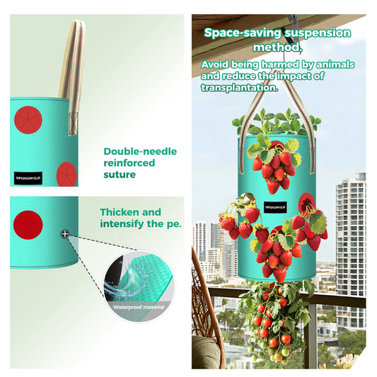 SPONDWILD 3 Pack Hanging Strawberry Planter Bags, Hanging Grow Bags with Bottom Planting Hole, Thickened PE Strawberry Pot for Vegetables Herbs Tomatoes