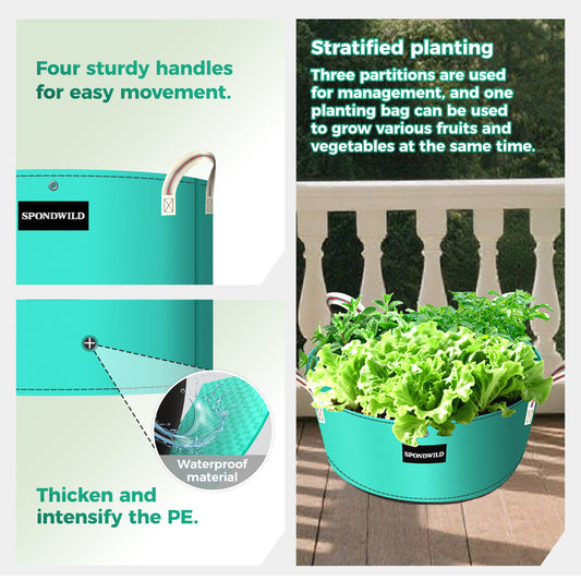 SPONDWILD 2 Pack 3 Compartment Potato Grow Bag,Vegetable Growing BagThickened PE Garden Pots with Drainage Holes Branch-Binding Holes, Reusable Plant Bag for Vegetables、Flowers