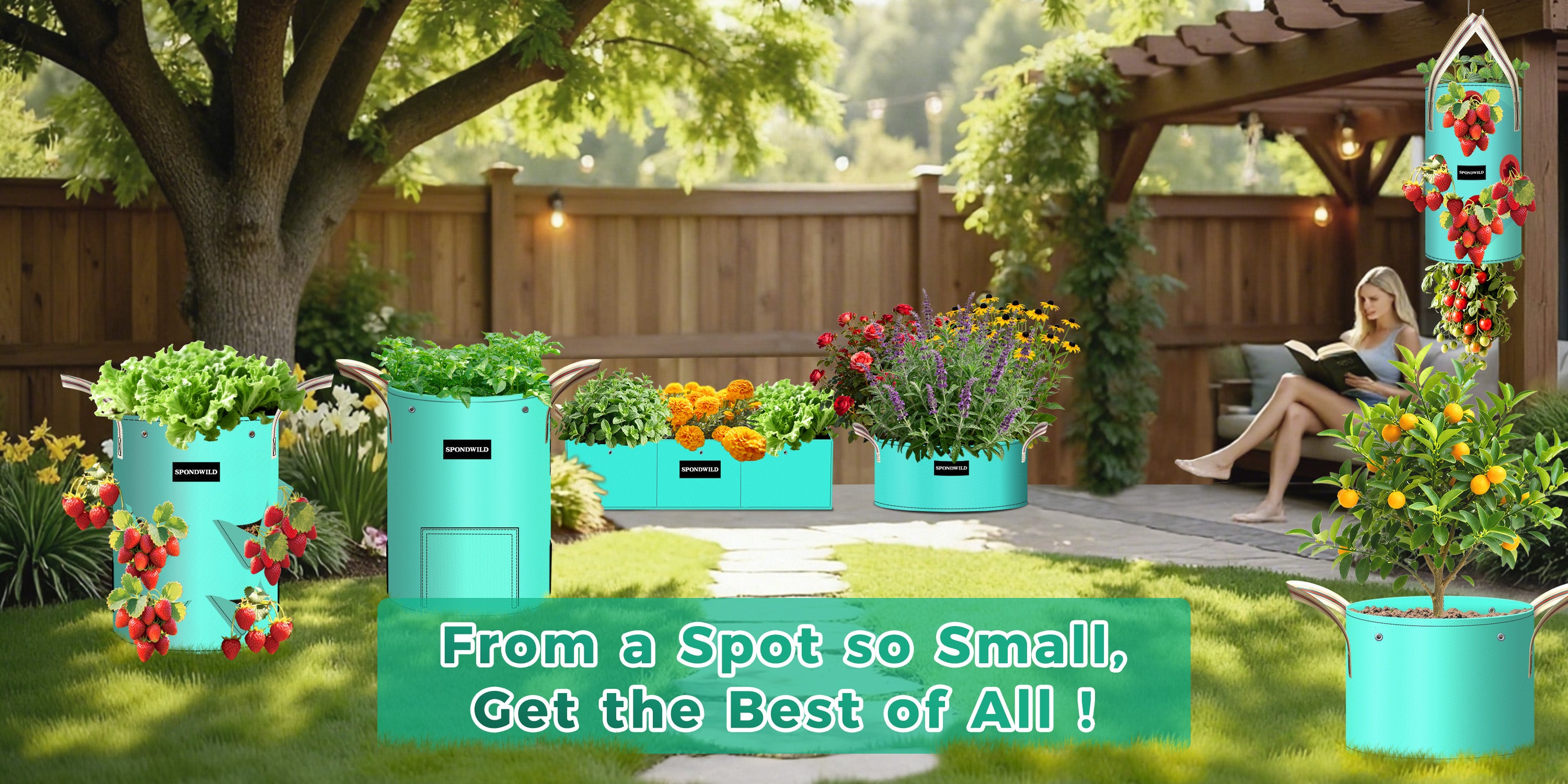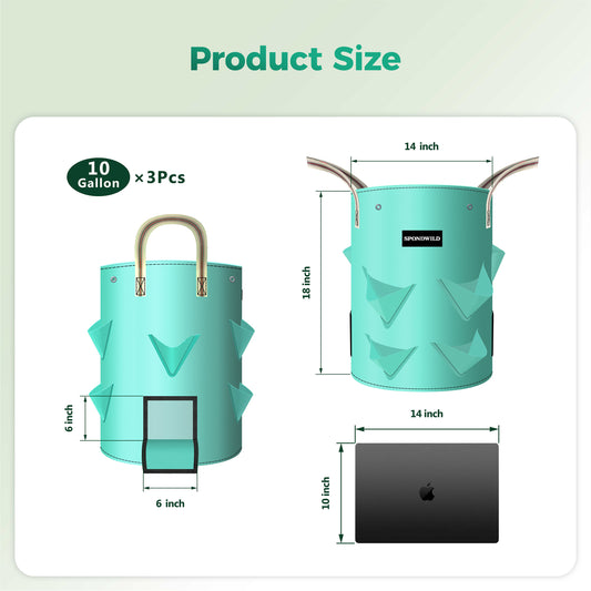 SPONDWILD 3 Pack Strawberry Grow Bags, Heavy Duty Reusable PE Pots with Breathable Window, Branch & Drainage Holes, Reinforced Handles for Strawberries, Veggies, Flowers, Balcony/Patio Use