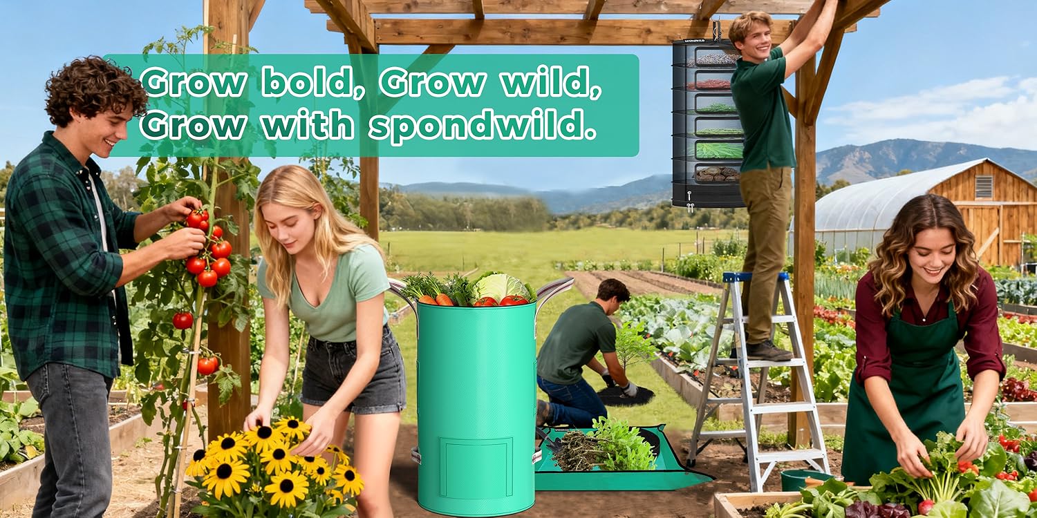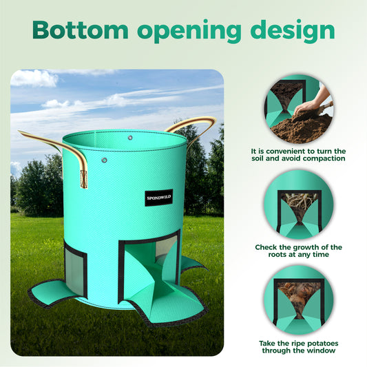 SPONDWILD 4 Pack Potato Grow Bags,PE Garden Planter Bag with Breathable Screen Window Reinforced Handles for Potatoes Tomatoes Carrots Onions