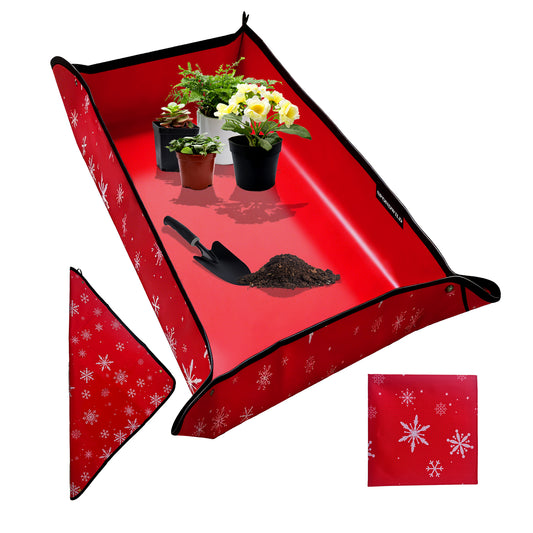 SPONDWILD Large Plant Transplanting Mat - PVC-Red Snowflake Thickened Waterproof Potting Mat, Succulent Gardening Mat, Portable Repotting Mat for Mess Control