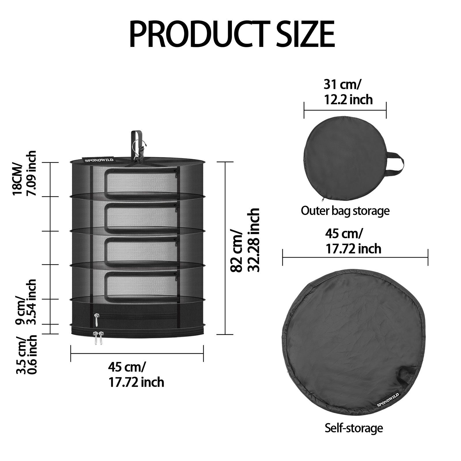SPONDWILD Herb Drying Rack Hanging Mesh, Medium 5 Layer Plant Drying Rack with Door Type Zipper & Closed Storage Compartment for Folding Basket Dryer Fitting in Grow Tents, Garden Outdoor